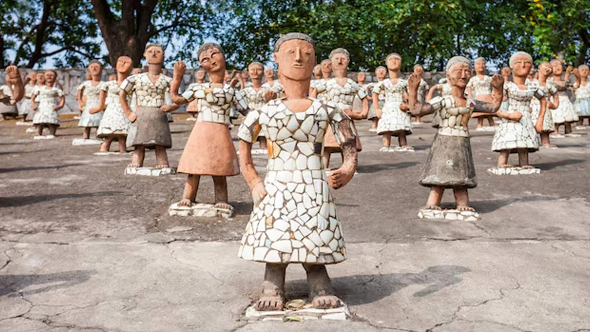 The garden is best known for its thousands of sculptures, including human figures, animals, dancers and musicians. According to Chandigarh Tourism states, “The Layout of Garden is based on the fantasy of a Lost Kingdom. It has 14 different chambers like the forecourt. It also highlights, Sculptures are created using items such as bangles, ceramic pots, tiles, bottles and Electric waste. The garden is a mixture of Landscape, architecture, sculpture and mythology.”