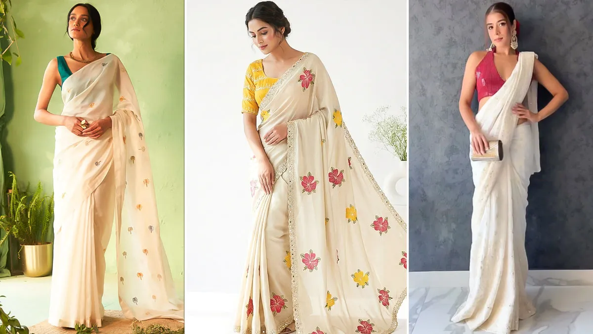 White Saree Contrast Blouse Designs: The white saree is the perfect canvas for Holi celebrations, but in 2026, the trend has shifted from just black and white. To make your Holi photos stand out, the trick is to have a contrasting blouse that grounds the look even before the colours burst forth. Whether it's traditional prints or modern halter-neck designs, here are five contrast blouse designs to go with your white saree for Holi.