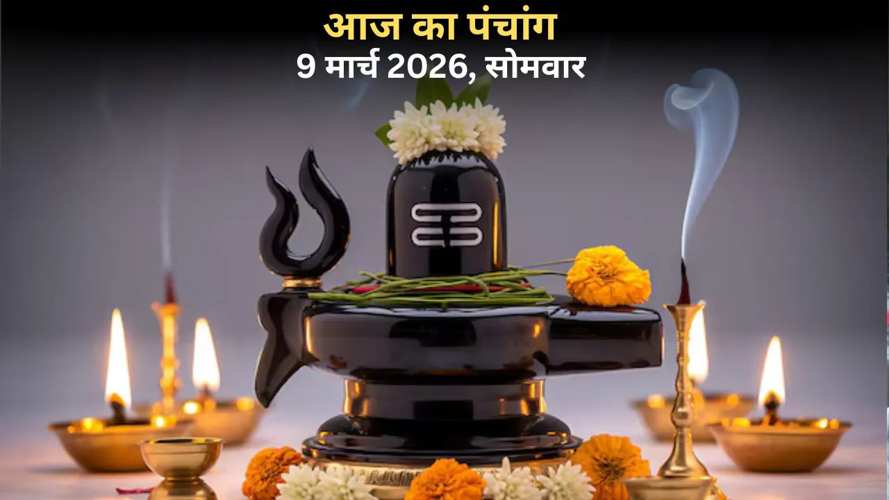 आज सोमवार, 09 मार्च 2026 का दिन भगवान शिव और चंद्र देव की असीम कृपा पाने के लिए बहुत ही खास और शुभ है। हिंदू पंचांग के अनुसार, आज पवित्र चैत्र महीने के कृष्ण पक्ष की षष्ठी तिथि रात 11:30 बजे तक रहेगी, जिसके ठीक बाद सप्तमी तिथि शुरू हो जाएगी। सोमवार का दिन मुख्य रूप से भोलेनाथ को समर्पित होता है। आज के दिन महादेव की सच्चे मन से पूजा करने से मन को अपार शांति मिलती है और जीवन की सारी बीमारियां और परेशानियां दूर हो जाती हैं। आज बहुत ही सुदर संयोग बन रहे हैं। दोपहर 04:12 बजे तक विशाखा नक्षत्र रहेगा और उसके बाद अनुराधा नक्षत्र लग जाएगा। इसके साथ ही, आज सुबह 07:34 बजे तक व्याघात योग रहेगा, जिसके बाद खुशियां और सफलता देने वाला हर्षण योग शुरू हो जाएगा। आइए, मध्य प्रदेश के छिंदवाड़ा के प्रसिद्ध ज्योतिषाचार्य पंडित सौरभ त्रिपाठी से आज के इस खास पंचांग की पूरी जानकारी, शुभ-अशुभ समय और जीवन की हर परेशानी को दूर करने के बेहद आसान और घरेलू उपाय विस्तार से जानते हैं।