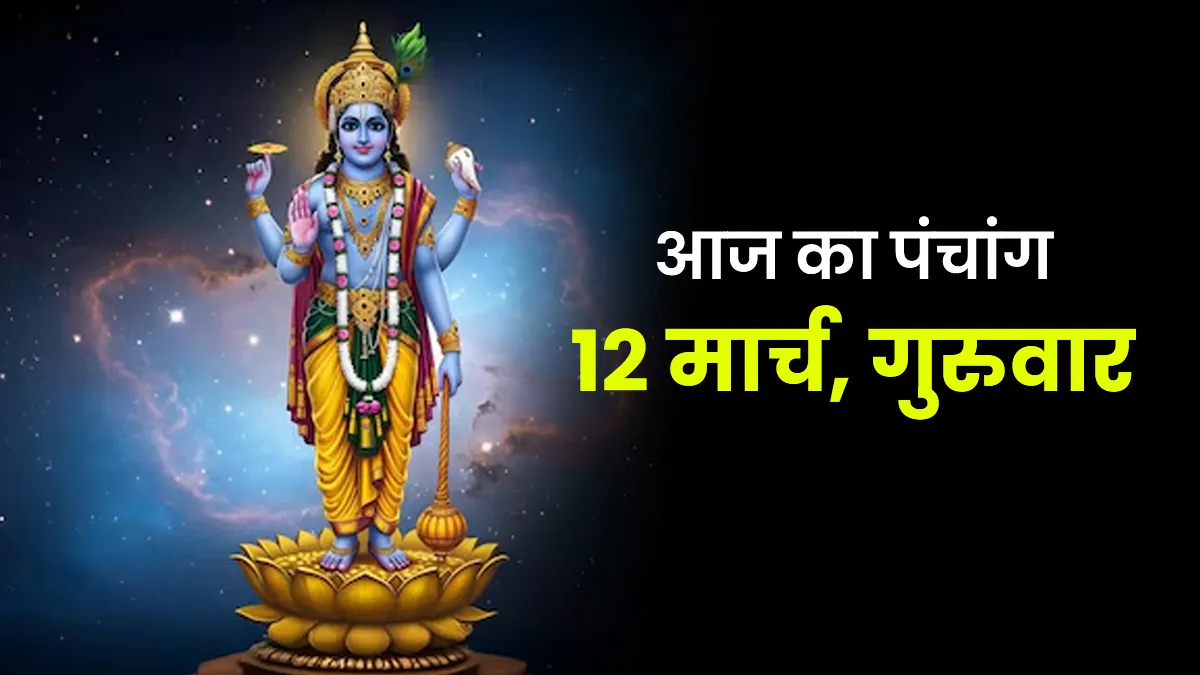 आज गुरुवार, 12 मार्च 2026 का दिन बहुत ही पवित्र और खास है। आज के दिन श्री हरि भगवान विष्णु जी और देवगुरु बृहस्पति की पूजा का विशेष महत्व है। हिंदू पंचांग के अनुसार, आज पवित्र चैत्र महीने के कृष्ण पक्ष की नवमी तिथि पूरी रात रहेगी। आज रात 12:44 बजे तक मूल नक्षत्र रहेगा और उसके बाद पूर्वाषाढ़ा नक्षत्र लग जाएगा। इसके साथ ही, आज सुबह 09:57 बजे तक सिद्धि योग रहेगा, जिसके बाद व्यतीपात योग शुरू हो जाएगा। सिद्धि योग हर काम में सफलता देने वाला योग माना जाता है। आइए, मध्य प्रदेश के छिंदवाड़ा के प्रसिद्ध ज्योतिषाचार्य पंडित सौरभ त्रिपाठी से आज के इस खास पंचांग की पूरी जानकारी, शुभ-अशुभ समय और जीवन की हर परेशानी को दूर करने के बेहद आसान और घरेलू उपाय विस्तार से जानते हैं।