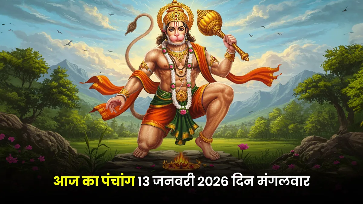 आज मंगलवार, 13 जनवरी 2026 का दिन शक्ति, ऊर्जा और संकल्प का दिन है। आज मंगलवार के साथ विशाखा नक्षत्र और शूल योग का संयोग बन रहा है। मंगलवार के स्वामी मंगल ग्रह हैं और विशाखा नक्षत्र के स्वामी देवगुरु बृहस्पति और अधिष्ठाता देवता इंद्राग्नि हैं। विशाखा नक्षत्र को उद्देश्य और महत्वाकांक्षा का नक्षत्र माना जाता है। यह संयोग उन लोगों के लिए बहुत महत्वपूर्ण है जो अपने करियर में किसी लक्ष्य को चाहते हैं या किसी कॉम्पीशन की तैयारी कर रहे हैं। आज शूल योग भी बन रहा है जो शाम तक प्रभावी रहेगा, ज्योतिष में शूल योग को थोड़ा कष्टकारी माना जाता है, इसमें किए गए कार्यों में बाधाएं या स्वास्थ्य समस्याएं आ सकती हैं। इसलिए आज का दिन धैर्य और हनुमान जी की शरण में रहने का है। माघ मास के कृष्ण पक्ष की दशमी तिथि पर भूमि विवाद सुलझाने और कर्ज चुकाने के प्रयास सफल होते हैं। आइए जानते हैं मध्य प्रदेश के छिंदवाड़ा के प्रसिद्ध ज्योतिषाचार्य पंडित सौरभ त्रिपाठी से आज का पंचांग और उपाय।