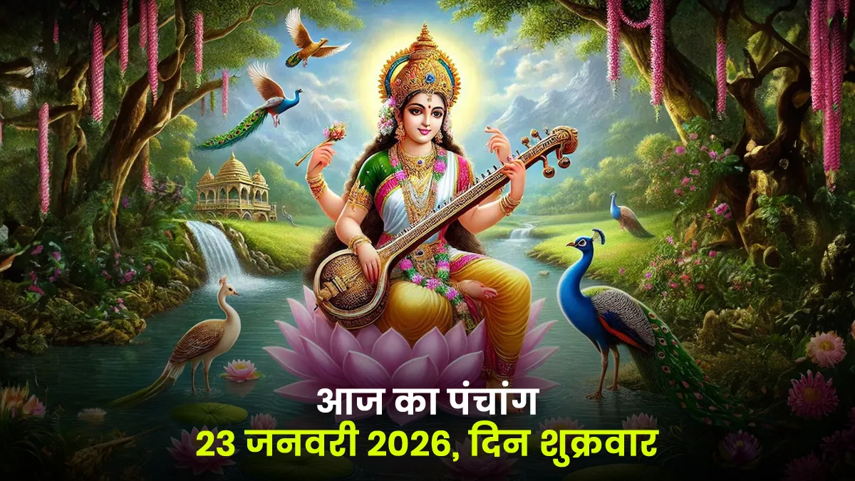 आज शुक्रवार, 23 जनवरी 2026 का दिन ज्ञान, कला और संगीत की देवी मां सरस्वती के प्राकट्य दिवस यानी बसंत पंचमी के रूप में मनाया जा रहा है। आज का दिन अबूझ मुहूर्त माना जाता है, यानी आज के दिन बिना पंचांग देखे भी शुभ कार्य विवाह, मुंडन, विद्या आरंभ किए जा सकते हैं। आज शुक्रवार होने से यह दिन लक्ष्मी-सरस्वती योग बना रहा है, जो धन और ज्ञान दोनों की प्राप्ति के लिए श्रेष्ठ है। आज पूर्व भाद्रपद नक्षत्र का प्रभाव रहेगा, जिसके स्वामी देवगुरु बृहस्पति हैं। यह नक्षत्र आध्यात्मिक ऊर्जा और तपस्या का प्रतीक है। पंचक अभी भी प्रभावी है, इसलिए निर्माण कार्य में सावधानी बरतें। आइए जानते हैं मध्य प्रदेश के छिंदवाड़ा के प्रसिद्ध ज्योतिषाचार्य पंडित सौरभ त्रिपाठी से आज का पंचांग, बसंत पंचमी का महत्व और आज के अचूक उपाय।