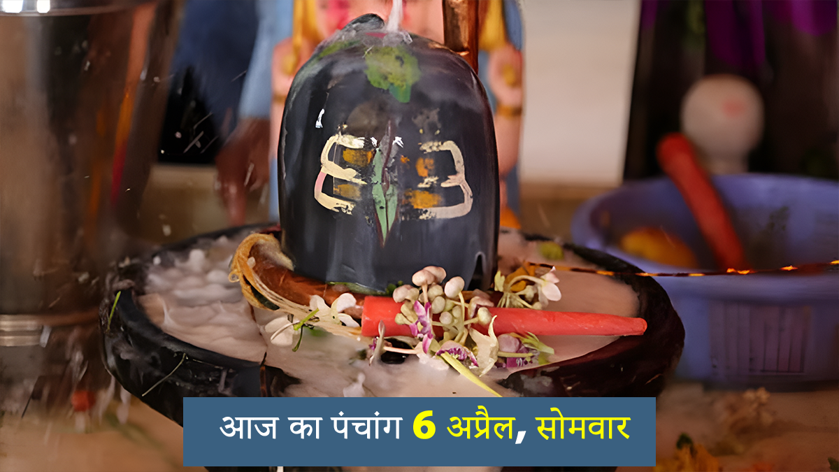 आज सोमवार, 06 अप्रैल 2026 का दिन बहुत ही शुभ और सफलता देने वाला है। हिंदू पंचांग के अनुसार, आज दोपहर 02:13 बजे तक वैशाख महीने के कृष्ण पक्ष की चतुर्थी तिथि रहेगी और उसके ठीक बाद पंचमी तिथि लग जाएगी। आज आकाश मंडल में पूरे दिन सर्वार्थ सिद्धि योग का प्रभाव रहेगा, जो हर तरह के रुके हुए कामों को पूरा करने की ताकत रखता है। सोमवार का दिन मुख्य रूप से भगवान शिव को समर्पित होता है। आज रात 02:57 बजे तक अनुराधा नक्षत्र रहेगा और उसके बाद ज्येष्ठा नक्षत्र लग जाएगा। सोमवार के दिन सर्वार्थ सिद्धि योग, चतुर्थी तिथि और अनुराधा नक्षत्र का एक साथ आना जीवन में नई शुरुआत, रुके हुए कामों में पक्की सफलता और खुशियों के लिए बहुत अच्छा माना जाता है। आइए, मध्य प्रदेश के छिंदवाड़ा के प्रसिद्ध ज्योतिषाचार्य पंडित सौरभ त्रिपाठी से आज के इस खास पंचांग की पूरी जानकारी, शुभ-अशुभ समय, आज का फल और जीवन की हर बाधा को दूर करने के बेहद आसान और घरेलू उपाय विस्तार से जानते हैं।