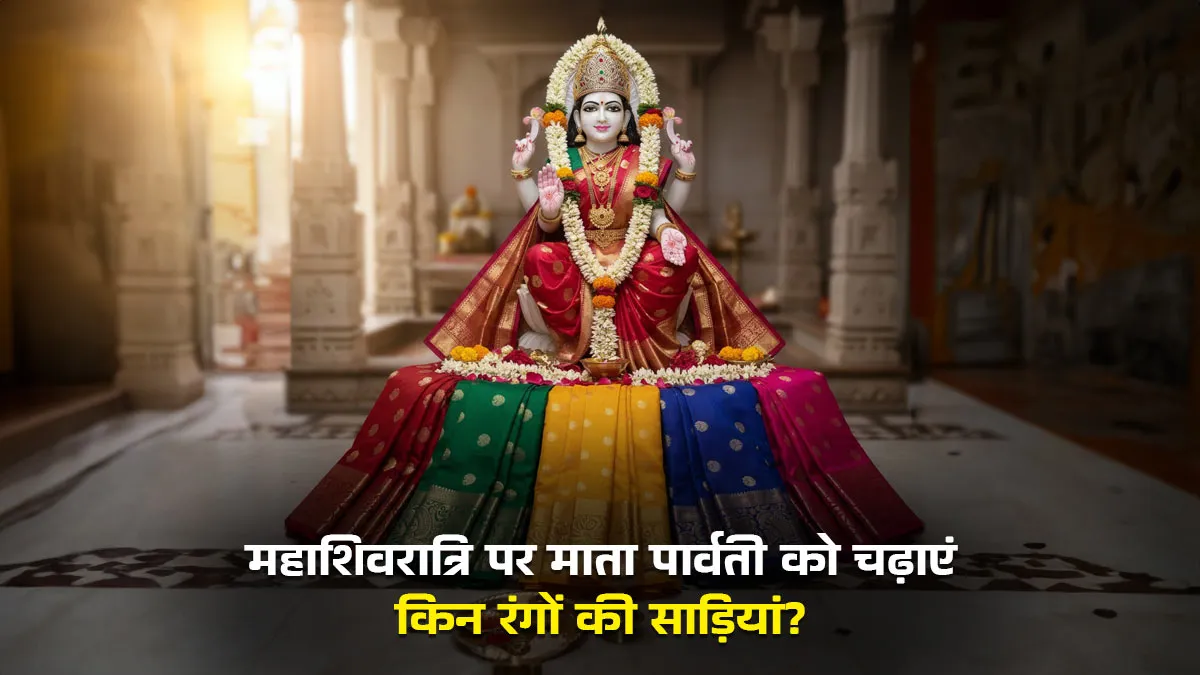 महाशिवरात्रि का दिन बेहद खास होता है। इस दिन सिर्फ भगवान शिव की ही नहीं बल्कि माता पार्वती की भी पूजा की जाती है। ऐसा कहा जाता है कि अगर किसी की शादी के संयोग नहीं बन रहे हैं, तो वो इस दिन विवाह कर सकते हैं। भगवान शिव और माता पार्वती का विवाह भी इसी दिन हुआ था। इस बार महाशिवरात्रि का दिन 15 फरवरी को पड़ रहा है। इस दिन आप माता पार्वती को अलग-अलग रंग का साड़ियों को चढ़ाकर उनका आशीर्वाद प्राप्त कर सकती हैं। पंडित जन्मेश द्विवेदी से जानते हैं कि आप किस रंग की साड़ी को माता पार्वती को अर्पित करें और इसका फल क्य प्राप्त होता है?