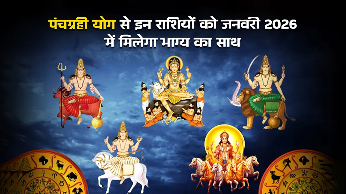ज्योतिष शास्त्र में ग्रहों की चाल और उनकी युति का विशेष महत्व होता है। जब आकाश मंडल में पांच ग्रह एक ही राशि में एक साथ विराजमान होते हैं तो उस स्थिति को 'पंचग्रही योग' कहा जाता है। यह एक अत्यंत दुर्लभ और शक्तिशाली खगोलीय घटना मानी जाती है। वृंदावन के ज्योतिषाचार्य राधाकांत वत्स के अनुसार, जब इतने सारे ग्रह एक ही घर में मिलते हैं तो उनकी संयुक्त ऊर्जा का प्रभाव पूरी दुनिया और सभी राशियों पर पड़ता है। यह योग सकारात्मक और नकारात्मक दोनों तरह के परिणाम दे सकता है, लेकिन यह इस पर निर्भर करता है कि ये ग्रह किस राशि में और किन नक्षत्रों में मिल रहे हैं। ऐसे में आइये जानते हैं कि कैसा पड़ने वाला है साल 2026 के जनवरी महीने में पंचग्रही योग का राशियों पर प्रभाव और किन राशियों के लिए ये योग खोलेगा भाग्य के द्वार?