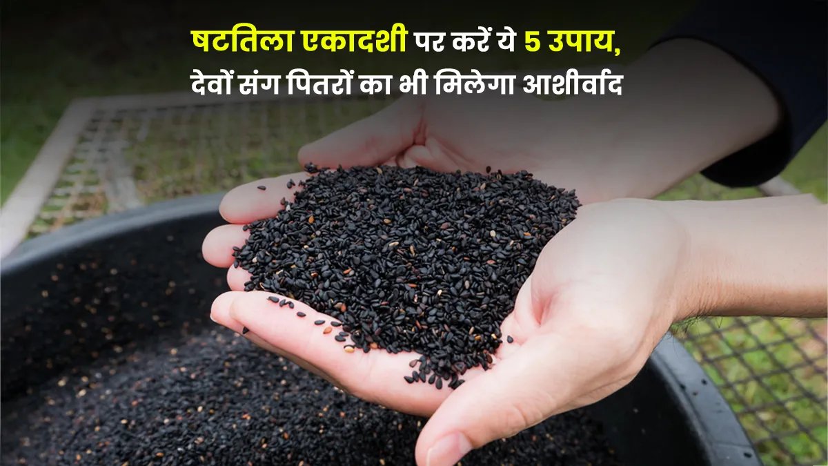 हिंदू धर्म में किसी भी एकादशी तिथि का विशेष महत्व होता है और पूरे साल में 24 एकादशी तिथियां मनाई जाती हैं। ऐसे ही माघ महीने के कृष्ण पक्ष की एकादशी तिथि को षटतिला एकादशी के नाम से जाना जाता है और यह व्रत विशेष रूप से फलदायी होता है। यह एकादशी तिथि भगवान विष्णु को समर्पित होती है और इस दिन व्रत करने के साथ भगवान विष्णु का पूजन विशेष रूप से किया जाता है। माघ महीने के कृष्ण पक्ष में आने वाली षटतिला एकादशी का नाम षटतिला इसलिए पड़ा है क्योंकि इस दिन तिल से जुड़े उपाय किए जाते हैं और काले तिल का दान करना विशेष रूप से शुभ माना जाता है। शास्त्रों की मानें तो षटतिला एकादशी पर काले तिल का दान करने से और कई अन्य उपाय करने से भगवान विष्णु का सदैव आशीर्वाद बना रहता है और माता लक्ष्मी की विशेष कृपा प्राप्त होती है। यही नहीं इस दिन कुछ विशेष उपाय करने से आपको पितरों का भी आशीर्वाद मिलता है और पितृ दोषों से मुक्ति मिलती है। आइए ज्योतिर्विद पंडित रमेश भोजराज द्विवेदी से जानें षटतिला एकादशी के कुछ उपायों के बारे में।
