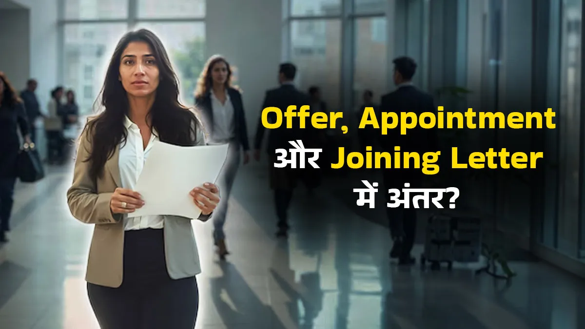 जब किसी व्यक्ति की जॉब लगती है तो इस प्रोसेस में जब हमें ईमेल या लिफाफे मिलते हैं, तो अक्सर हम ऑफर लेटर, अपॉइंटमेंट लेटर और जॉइनिंग लेटर जैसे शब्दों के बीच उलझ जाते हैं। कई लोग इन तीनों को एक ही समझते हैं, लेकिन कॉर्पोरेट जगत और कानूनी नजरिए से इन तीनों के मतलब और काम बिल्कुल अलग हैं। ऐसेमें इन तीनों के अंतर के बारे में पता होना जरूरी है। आज का हमारा लेख इसी विषय पर है। आज हम आपको अपने इस लेख के माध्यम से बताएंगे कि ऑफर लेटर, अपॉइंटमेंट लेटर और जॉइनिंग लेटर में अंतर है और इन तीनों का क्या काम है। पढ़ते हैं आगे...