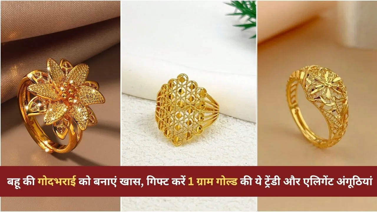 अगर आप अपनी बहू की गोदभराई को और भी खास बनाना चाहती हैं, तो ऊपर दिखाई गई 1 ग्राम गोल्ड की इन खूबसूरत अंगूठियों में से कोई भी डिजाइन चुन सकती हैं। यह न सिर्फ बजट में आएंगी, बल्कि देखने में भी इतनी आकर्षक होंगी कि हर कोई उनकी तारीफ किए बिना नहीं रह पाएगा। यह जानकारी आपको पसंद आई हो, तो इस लेख को शेयर और लाइक जरूर करें। इसी तरह और भी आर्टिकल्स पढ़ने के लिए जुड़ी रहें हरजिंदगी से।