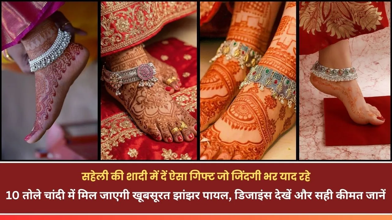 Silver Jhanjhar Payal Designs: सहेली की शादी में उसे गिफ्ट देने के लिए कुछ अच्छा सामान खरीदना चाहती हैं, तो सबसे बेस्ट है कि आप उसे 10 तोले तक की चांदी की झांझर पायल दे दें। दरअसल, जब कोई अपनी नई जिंदगी की शुरुआत करता है, तो दिल चाहता है कि उसे कुछ ऐसा दिया जाए जो हमेशा उसे आपकी याद दिलाता रहे। ऐसे में अगर आप अपनी बेस्ट फ्रेंड को शादी में 10 तोले की चांदी की झांझर पायल गिफ्ट करती हैं, तो यह सिर्फ एक तोहफा नहीं, बल्कि आपकी दोस्ती की मजबूत डोर बन जाती है।