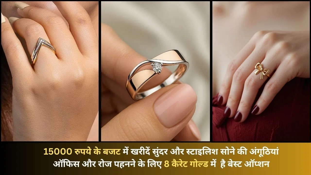gold ring for women: सोने के भाव बढ़ेते ही जा रहे हैं और आम आदमी की पहुंच से सोना दूर होता जा रहा है। मगर सोने से महिलाओं का प्रेम अभी कम नहीं हुआ है। हर महिला आज भी सोने के जेवर पहनने की इच्छा रखती है। कुछ नहीं तो सोने की अंगूठी तो होनी ही चाहिए हाथों में। ऐसे में अगर आप कम बजट में असली सोने की अंगूठी खरीदना चाहती हैं, तो 8 कैरेट गोल्ड रिंग आपके लिए एक शानदार विकल्प हो सकती है। आजकल मार्केट में ऐसे कई डिजाइन उपलब्ध हैं, जो न केवल स्टाइलिश हैं बल्कि रोज पहनने के लिए भी बिल्कुल सही हैं। खास बात यह है कि 15,000 रुपये के अंदर आप आराम से एक सुंदर और टिकाऊ गोल्ड रिंग खरीद सकती हैं।
