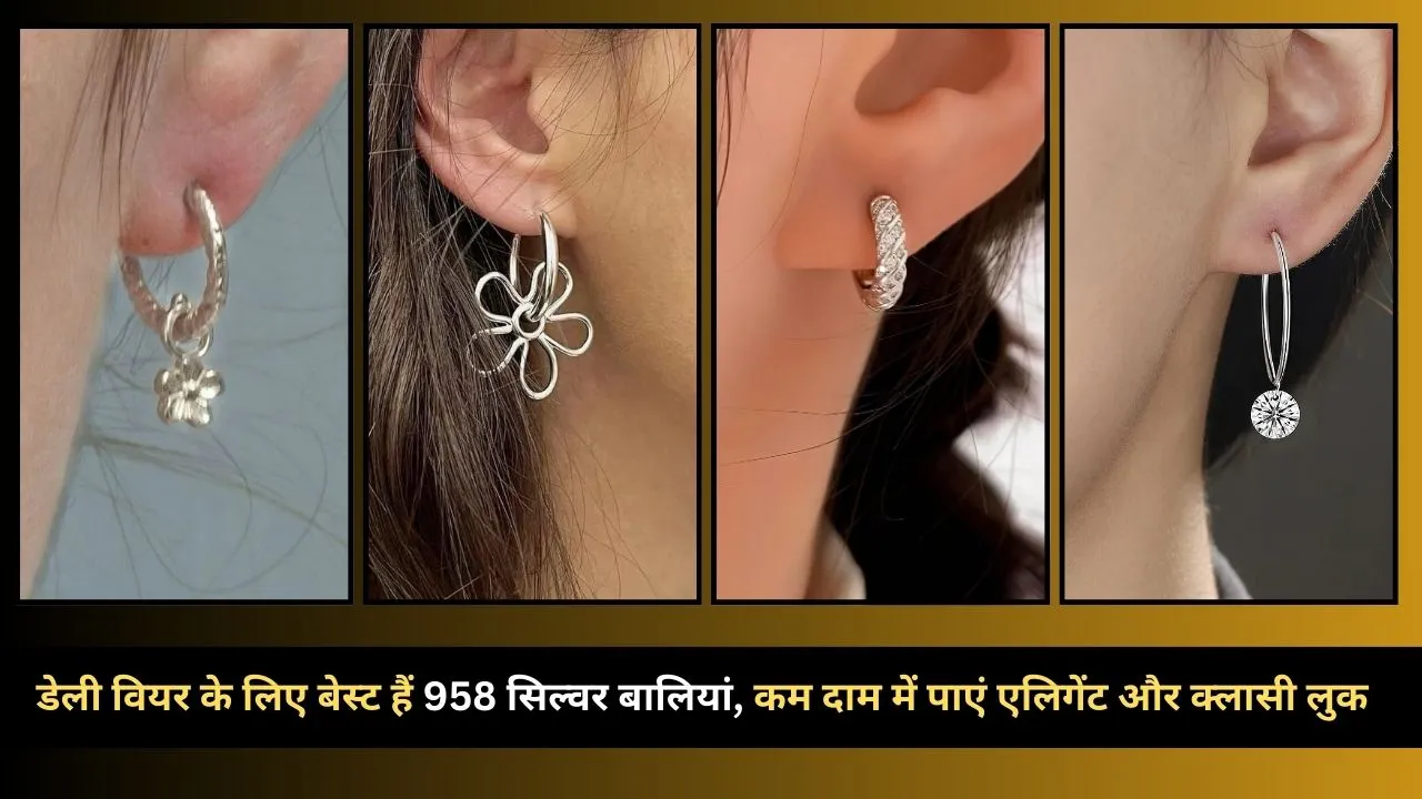 daily wear silver earrings: हम महिलाओं के लिए ज्वेलरी सिर्फ सिंगार का हिस्सा नहीं होती, बल्कि यह हमारे लिए पर्सनैलिटी और स्टाइल स्टेटमेंट को बेहतर बनाने का जरिया भी होती है। ऐसे में हम हमेशा सुंदर, सस्ती और टिकाऊ ज्वेलरी की तलाश में रहते हैं। खासकर कान की बालियों के लिए हमारा दिल हमेशा यही कहती है 'यह दिल मांगे मोर', ऐसे में सोना और चांदी दोनों के महंगे होने के बाद हम महिलाएं करें तो क्या करें। हालांकि, बाजार में आ रही 958 सिल्वर की बालियां भी आजकल काफी लोकप्रिय हो रही हैं। अगर आप भी ऐसी बालियां तलाश रही हैं, जो दिखने में खूबसूरत हों, पहनने में हल्की हों और दाम भी ज्यादा न हों, तो 958 चांदी की बाली आपके लिए एक परफेक्ट विकल्प हो सकती है।