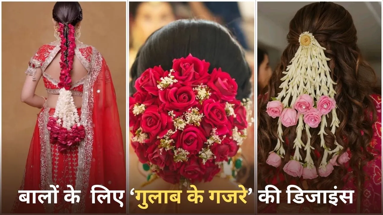 Gulab Ka Gajra: शादी का सीजन चल रहा है, ऐसे में गजरे के बिना महिलाओं का श्रंगार कहा पूरा हो सकता है। अपने लुक को गुलाब के गजरे के साथ महका भी सकती हैं और सजा भी सकती हैं। अब तो पहले जैसे केवल ट्रेडिशनल गजरे ही नहीं बल्कि तरह-तरह के डिजाइनर गजरे भी बाजार में आ रहे हैं। जिन्हें आप अपनी हेयरस्टाइल के हिसाब से किसी अच्छे फूलवाले से बनवा सकती हैं। आज हम आपको कुछ ऐसे ही गुलाब के गजरों के डिजाइंस दिखाएंगे, जिन्हें आप ओपन, पिनअप या फिर जूड़े वाले हेयरस्टाइल के साथ लगा सकती हैं।