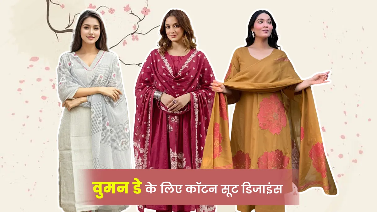 Cotton Suit Designs: महिलाओं को खूबसूरत दिखना हम सभी को पसंद होता है। इसलिए हम अक्सर ट्रेंडी डिजाइन वाले कपड़ों को सर्च करते हैं, जिसे स्टाइल करके लुक अच्छा नजर आए। वुमन डे जो 8 मार्च को सेलिब्रेट होगा। इस दिन पहनने के लिए आप अलग-अलग तरह के डिजाइन वाले सूट को वियर कर सकती हैं। सूट पहनने के बाद अच्छे लगेंगे। इसे आप कॉटन फैब्रिक में खरीदें और वियर करें। आइए बताते हैं किस तरह के डिजाइन वाले सूट को आप वियर कर सकती हैं।