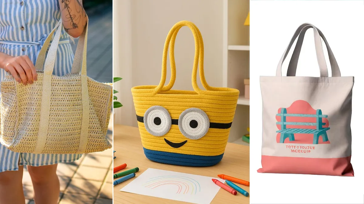 अगर आपको कुछ फंकी ट्राई करना है, तो ऐसे में आप टोट बैग के इस डिजाइन को ट्राई कर सकती हैं। इस तरह के टोट बैग कैरी करने के बाद अच्छे लगेंगे। साथ ही इससे लुक भी अट्रैक्टिव नजर आएगा। इसमें सामान रखने का काफी अच्छा स्पेस भी मिल जाएगा, ताकि आपकी सारी चीजें बैग में आसानी से आ सकें।