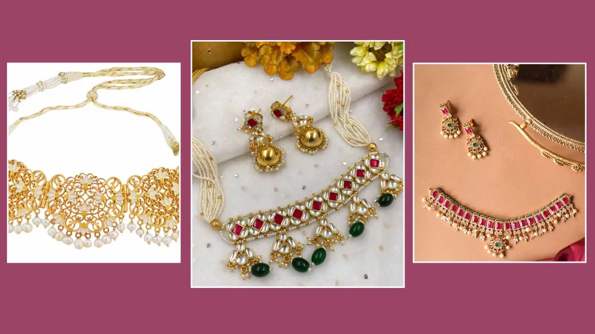 आपके लुक में चार चांद लगाने का काम जहां आपका आउटफिट करता है तो वहीं ज्वेलरी भी आपके लुक को सुंदर बनाने का काम करते हैं। बजार में आपको कई तरह के ज्वेलरी मिल जाएंगी जिन्हें आप आपनी आउटफिट के साथ स्टाइल करती हैं। लेकिन, अगर आप साड़ी पहन रही हैं और रॉयल लुक चाहती हैं तो आप ये न्यू डिजाइंस वाले चोकर स्टाइल कर सकती हैं। ये चोकर सेट आपके लुक को स्टाइलिश टच देने का काम करेंगे तो वहीं आप इन्हें स्टाइल करने के बाद आप सुंदर भी नजर आएंगी।