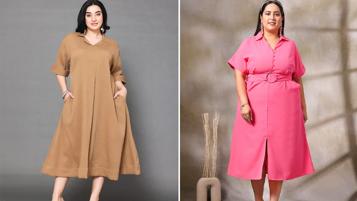 अधिकतर प्लस साइज महिलाएं हमेशा अपने आउटफिट को लेकर कंफ्यूज रहती हैं। वह ऐसे आउटफिट पहनना पसंद करती हैं, जिसमें वह ज्यादा मोटी ना लगे और अपनी खूबसूरती को भी बढ़ा सके। ऐसे में आपके लिए यह खूबसूरत और नए डिजाइन वाली स्प्रेड कॉलर फ्लेयर्ड स्लीव्स शर्ट मिडी ड्रेस सही रहेगी, जिसे पहनकर आप स्लिम लुक क्रिएट कर सकती हैं साथ ही अपनी खूबसूरती में चार चांद भी लगा सकती हैं।