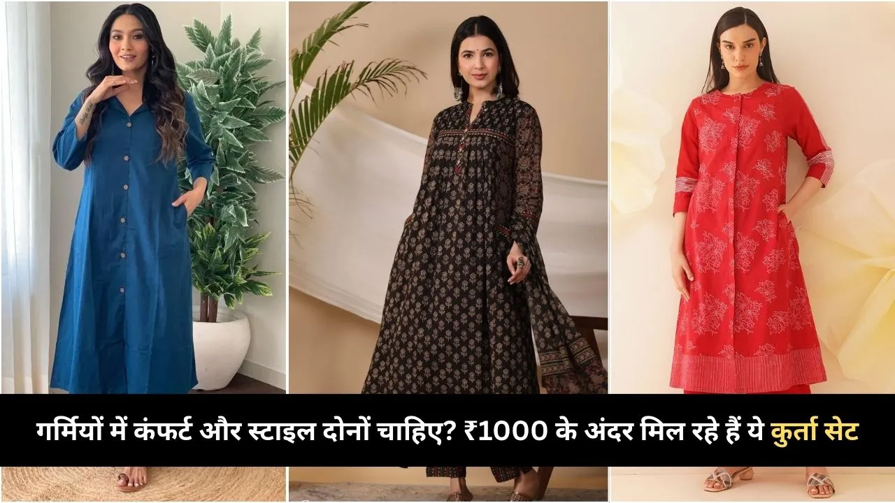 गर्मियों का मौसम शुरू हो चुका है और इसी के साथ महिलाओं की वॉर्डरोब में वुलन कुर्ता सेट की जगह कॉटन कुर्ता सेट ने ले ली है। हालांकि, हर साल की तरह डेली यूज मे पहनने के लिए महिलाएं नए स्टाइल और लेटेस्ट डिजाइन वाले सस्ते एंव टिकाऊ कुर्ता सेट की तलाश में हैं। ऐसे में मार्केट में 1000 रुपये के अंदर ही आपको बहुत अच्छे विकल्प मिल जाएंगे। हम आपको कुछ ऐसे ही सस्ते कॉटन कुर्ता सेट के डिजाइंस दिखाने वाले हैं, जो आप घर से लेकर ऑफिस तक और किसी भी छोटे-मोटे आकेजन पर पहन सकती हैं। तो चलिए कुछ ऐसे ही कुर्ता सेट्स के बारे में आपको बताते हैं।