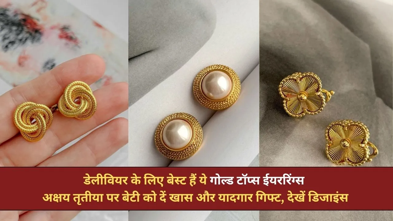 आजकल मार्केट में गोल्ड टॉप्स ईयररिंग्स में कई खूबसूरत और ट्रेंडी डिजाइंस उपलब्ध हैं, जिन्हें आप अपनी बेटी की पसंद और स्टाइल के अनुसार चुन सकती हैं। आइए जानते हैं कुछ ऐसे ही शानदार डिजाइंस के बारे में, जो इस अक्षय तृतीया पर गिफ्ट करने के लिए बिल्कुल परफेक्ट हैं।