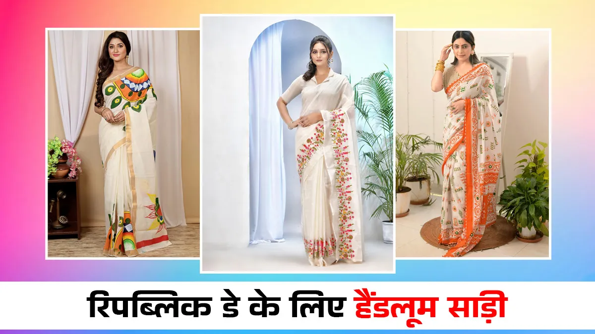 Handloom Sarees Designs: साड़ी पहनना हम सभी को पसंद होता है। इसलिए हम अक्सर ऐसे डिजाइन वाली साड़ी को वियर करते हैं, जिसे स्टाइल करके लुक अच्छा नजर आए। साथ ही ओकेजन के हिसाब से वो अच्छी लगे। ऐसे में अगर आप स्कूल टीचर हैं और रिपब्लिक डे के खास मौके पर पहनने के लिए साड़ी के अलग-अलग डिजाइंस को सर्च कर रही हैं, तो ऐसे में आप हैंडलूम साड़ी को वियर कर सकती हैं, ताकि आपका लुक अच्छा नजर आए। आइए आर्टिकल में बताते हैं किस तरह की हैंडलूम साड़ी को आप स्टाइल कर सकती हैं।