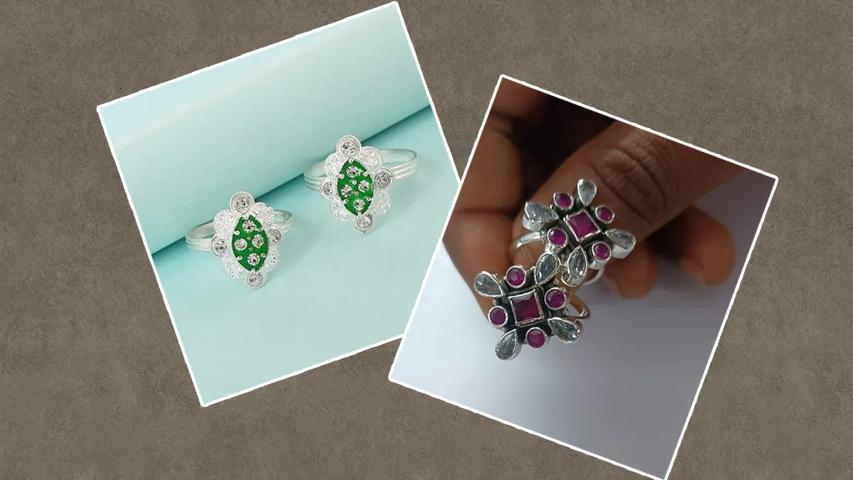अगर आप अपने लुक को स्टाइलिश और अट्रैक्टिव बनाना चाहती हैं, तो भीड़ से हटकर दिखने के लिए आप इस तरह की खूबसूरत सिल्वर एमराल्ड रूबी टो रिंग मीनाकारी बिछिया को ट्राई कर सकती हैं। ऐसी बिछिया डिजाइंस आपके पैरों की खूबसूरती में चार चांद लगा देगी और आपको रॉयल लुक देने में भी मदद करेगी। इसे आप ऑनलाइन भी खरीद सकती हैं।
