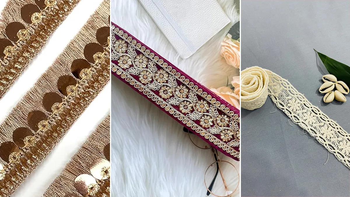 आप अपने सूट की नेकलाइन या ब्लाउज में लगाने के लिए एम्ब्रॉयडरी वर्क वाली लेस लगा सकती हैं। इस तरह की लेस सिंपल कपड़े में जान डाल देती है। साथ ही लुक को और अट्रैक्टिव बनाती है। आपको इसे ट्राई करना चाहिए। साथ ही इसे सही मीटर में खरीदकर आउटफिट में लगानी चाहिए।