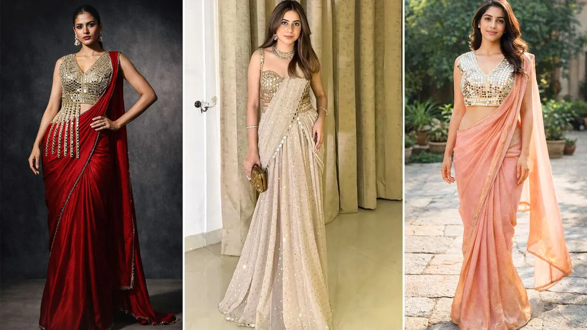 शादी में खूबसूरत नजर आने के लिए आप मिरर वर्क वाली रेडी टू वियर साड़ी को स्टाइल कर सकती हैं। इस तरह की साड़ी पहनने के बाद अच्छी लगेगी। साथ ही इससे लुक भी अट्रैक्टिव नजर आएगा। आपको साड़ी के यह डिजाइन आसानी से मार्केट में मिल जाएंगे, जिसे आप अच्छी एक्सेसरीज के साथ स्टाइल कर सकती हैं।