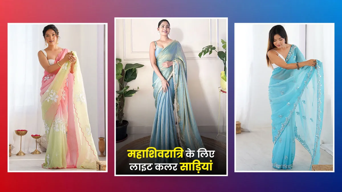 Saree Designs For Women: सुंदर दिखना हम सभी को पसंद होता है। इसलिए हम त्योहारों पर एथनिक आउटफिट को स्टाइल करते हैं, ताकि सबसे अलग नजर आएं। ऐसे में आप लाइट कलर साड़ियों को स्टाइल कर सकती हैं। महाशिवरात्रि के दिन पहनने के लिए लाइट कलर साड़ियां परफेक्ट होती है। बस आपको डिजाइन और कलर का ध्यान रखना होगा। आइए बताते हैं किस तरह की साड़ियों को आप स्टाइल कर सकती हैं।