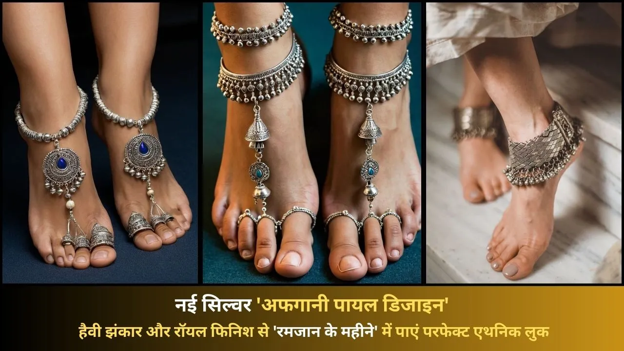 Afgani Payal Ke Designs: रमजान का महीना आते ही बाजारों में रौनक बढ़ जाती है और महिलाओं की शॉपिंग शुरू हो जाती है। खासतौर पर शॉपिंग की लिस्ट में ज्वेलरी सबसे ऊपर रहती है और जब बात पायल की आती है, तो महिलाओं से रुका नहीं जाता है। तो हमने सोचा क्यों न रमाजान के महीने में आपको लेटेस्ट डिजाइन वाली अफगानी पायल की डिजाइंस दिखाई जाएं, जो खूब ट्रेंड कर रही हैं। इन पायलों की खासियत है इनका हैवी लुक, बारीक नक्काशी और घुंघरुओं की मधुर खनक, जो आपके एथनिक अंदाज को और भी खास बना देती है। आपको चांदी में इस तरह की पायल के कई डिजाइंस मिल जाएंगी। अगर आप भी रमजान के मौके पर नई और हैवी लुक वाली पायल खरीदने के बारे में सोच रही हैं, तो आपो भी एक बार लेख में दिखाई गई डिजाइंस के बारे में सोचना चाहिए।