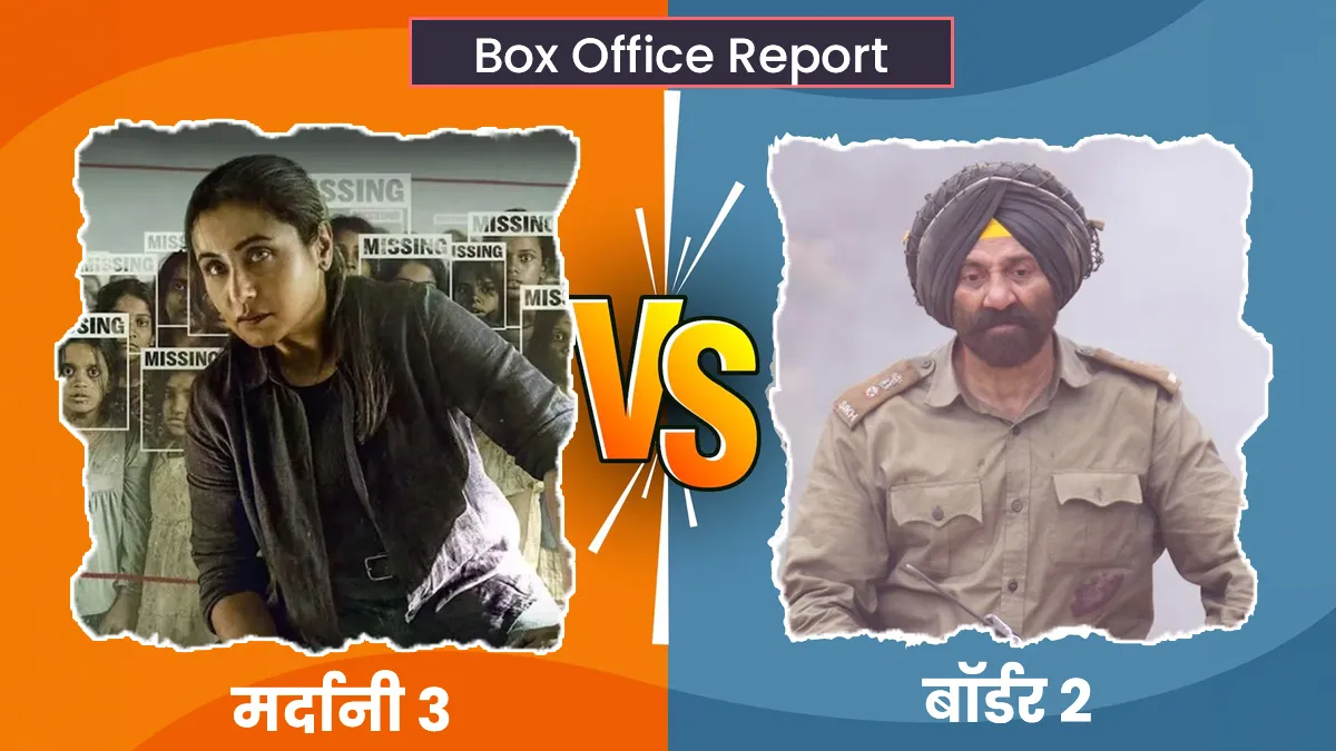 Border 2 और Mardaani 3 को लेकर लंबे समय से बज था और कुछ दिन पहले ये दोनों ही फिल्में रिलीज हो चुकी हैं। 'बॉर्डर 2' 23 जनवरी को और 'मर्दानी 3' 30 जनवरी को थियेटर्स में उतरी थी। बॉर्डर में जहां सनी देओल, दिलजीत दोसांझ, वरुण धवन और अहान शेट्टी समेत कई कलाकार हैं, तो वहीं 'मर्दानी 3' का दारोमदार शिवानी शिवाजी रॉव यानी रानी मुखर्जी के कंधों पर ही है। 'बॉर्डर 2' को क्रिटिक्स और ऑडियंस से अच्छे रिव्यूज मिल रहे हैं, दूसरी तरफ 'मर्दानी 3' को मिले-जुले रिव्यू मिल रहे हैं। सनी देओल की फिल्म 'बॉर्डर 2' को अच्छी ओपनिंग मिली थी और 'मर्दानी 3' की शुरुआत सुस्त रही थी और ये फिल्म धीमी चाल में ही आगे बढ़ रही है। चलिए आपको बताते हैं कि दोनों फिल्में अब तक टिकट खिड़की पर कितनी कमाई कर चुकी हैं और कौन-सी फिल्म बाजी मारती नजर आ रही है?