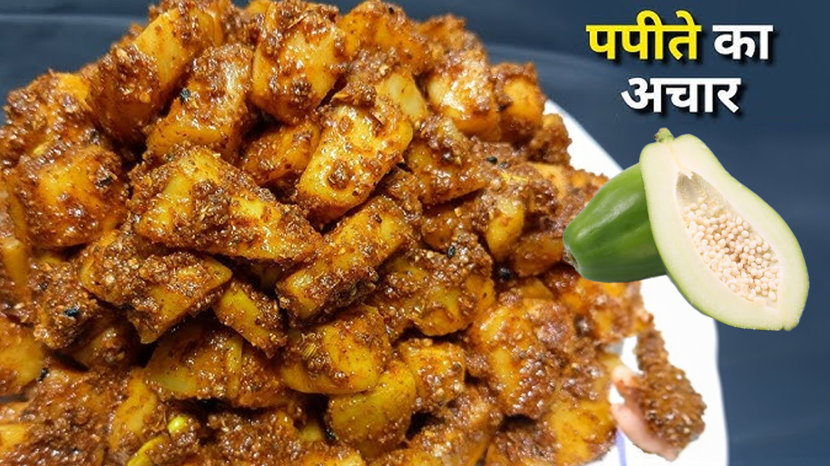 Pickle Recipe: सर्दी हो या गर्मी हर मौसम में अक्सर हम नींबू, गाजर और गोभी का अचार खाकर ऊब जाते हैं। ऐसे में स्वाद बदलने के लिए पपीते का अचार एक शानदार विकल्प है। पपीता न केवल डाइजेशन के लिए बेहतरीन माना जाता है बल्कि इसका क्रंची स्वाद खाने के टेस्ट को दोगुना कर देता है। सबसे अच्छी बात यह है कि इसे बनाने में घंटों की मेहनत या धूप में सुखाने का झंझट नहीं है। इस अचार को आप 10 मिनट में तैयार कर सकती हैं। साथ ही इसे आप पराठे, पूरी या दाल-चावल के साथ बहुत ही स्वादिष्ट लगता है।