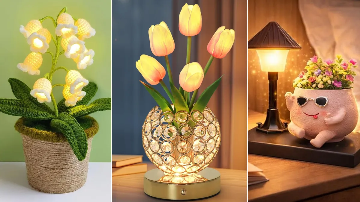 अगर आप अपने लिविंग एरिया या बेडरूम की टेबल पर फ्लावर शोपीस रखना चाहती हैं, तो इसके लिए टुलिप फ्लावर डिजाइन वाला टेबल लैंप बेस्ट है। इसमें आपको अलग-अलग रंगों के साथ-साथ विभिन्न शेप और डिजाइन भी मिल जाएंगे। कमरे की लाइट बंद करके जब आप इसे ऑन करेंगे, तो एक प्यारा सा लुक मिलेगा, जो देखने में बेहद खूबसूरत लगता है।