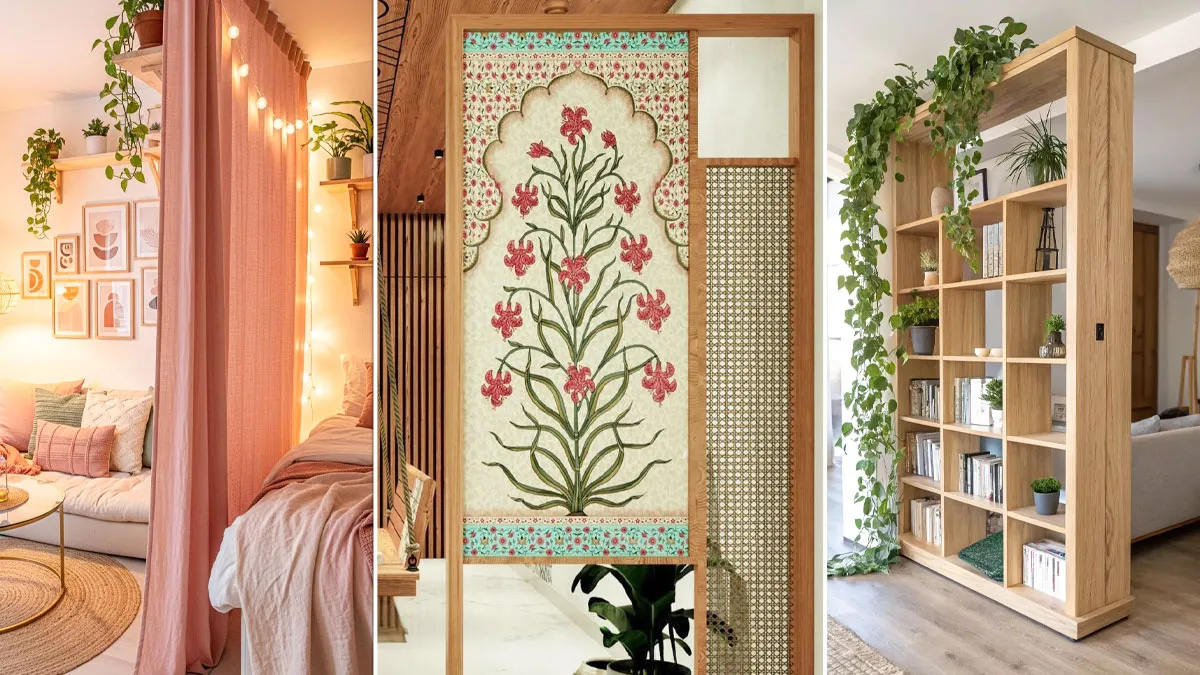 Modern Room Divider Designs: आज के समय में छोटे फ्लैट्स और स्टूडियो अपार्टमेंट्स का चलन काफी बढ़ गया है। ऐसे में बेडरूम और लिविंग रूम अक्सर एक-दूसरे से जुड़े होते हैं। कई लोग इसे लेकर परेशान रहते हैं कि एक ही बड़े कमरे में अपनी प्राइवेसी कैसे बनाएं। साथ ही घर को स्टाइलिश कैसे दिखाएं। बेडरूम अटैच लिविंग रूम डिजाइन करना एक क्रिएटिविटी है, जहां आप बिना दीवार बनवाएं अलग-अलग स्पेस बना सकती हैं।