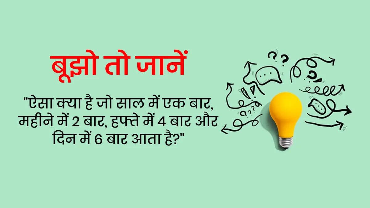 "ऐसा क्या है जो साल में एक बार, महीने में 2 बार, हफ्ते में 4 बार और दिन में 6 बार आता है?"