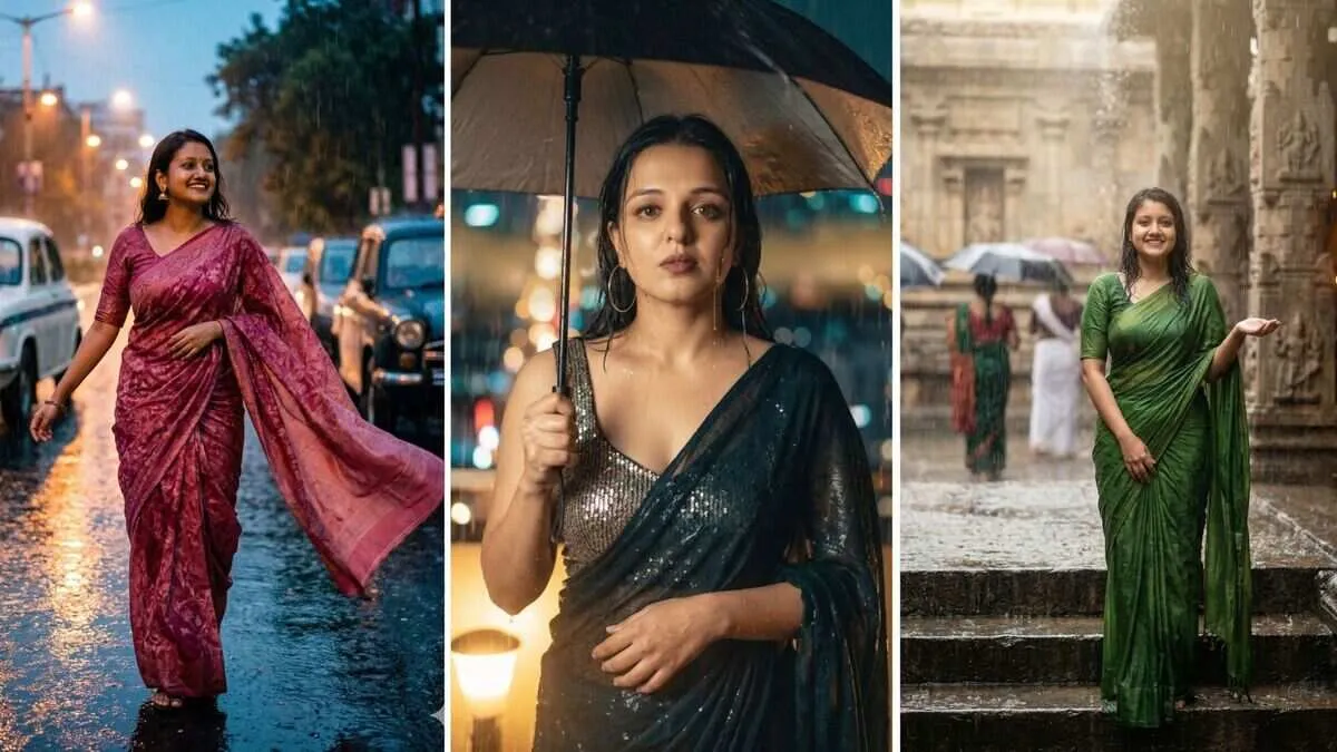Google Gemini पर बारिश में साड़ी वाली फोटो बनाने के लिए प्रोम्पट महिलाओं को बहुत ज्यादा पसंद आ रहे हैं। भीगते हुए बालों के साथ हाथों में छाता पकड़े प्रोम्पट वाली फोटो आपने कई सोशल मीडिया पर वायरल देखी होगी। जेमिनी जैसे फोटो एडिटिंग ऐप के आने के बाद अब आपको क्रिएटिव शूट के लिए प्रोफेशनल कैमरा या लोकेशन की जरूरत नहीं होती। आप अपनी किसी भी फोटो को जेमिनी से अपनी पसंद की साड़ी वाली फोटो में बना सकती हैं। आज के इस आर्टिकल में हम आपको ऐसे रेट्रो स्टाइल प्रोम्पट के बारे में बताएंगे, जिससे आप एक से एक तस्वीरें पोस्ट करने के लिए बना सकती हैं।