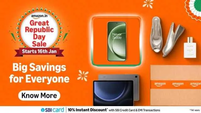 If you are looking for great deals, ideal exchange offers, no-cost EMI options and others, this year’s Amazon Great Republic Day Sale 2026 has got you covered. It is announced to start from 16 January 2026, Friday, offering heavy discounts on a wide range of products available on Amazon. There are multiple options in gadgets, electronics, home appliances, fashion, beauty, daily needs, and more, offering blockbuster deals, 8 pm deals, top deals, blockbuster deals with exchange, etc.