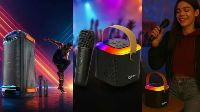 pTron का यह नया ब्लूटूथ स्पीकर संगीत और मस्ती का शानदार कॉम्बिनेशन बन सकता है। यह पोर्टेबल कराओके स्पीकर दमदार 16W साउंड आउटपुट के साथ गहरा बेस, साफ मिड और क्रिस्प हाई साउंड दे सकता है, जिससे सुनने का अनुभव बेहद शानदार हो सकता है। इसके साथ मिलने वाला वायरलेस कराओके माइक्रोफोन हल्का है और फनी वॉइस इफेक्ट्स के कारण गाने और भी मज़ेदार बन सकते हैं। स्पीकर में वाइब्रेंट RGB लाइट्स दी गई हैं, जो पार्टी का माहौल बना सकती हैं और एक बार चार्ज करने पर यह लगभग 6 घंटे तक चल सकता है। ब्लूटूथ 5.3, AUX और TF कार्ड जैसे मल्टी-प्ले मोड्स के साथ यह स्पीकर इस्तेमाल में बेहद आसान माने जाते हैं और टाइप-सी चार्जिंग पोर्ट इसे और भी सुविधाजनक बना सकता है।
