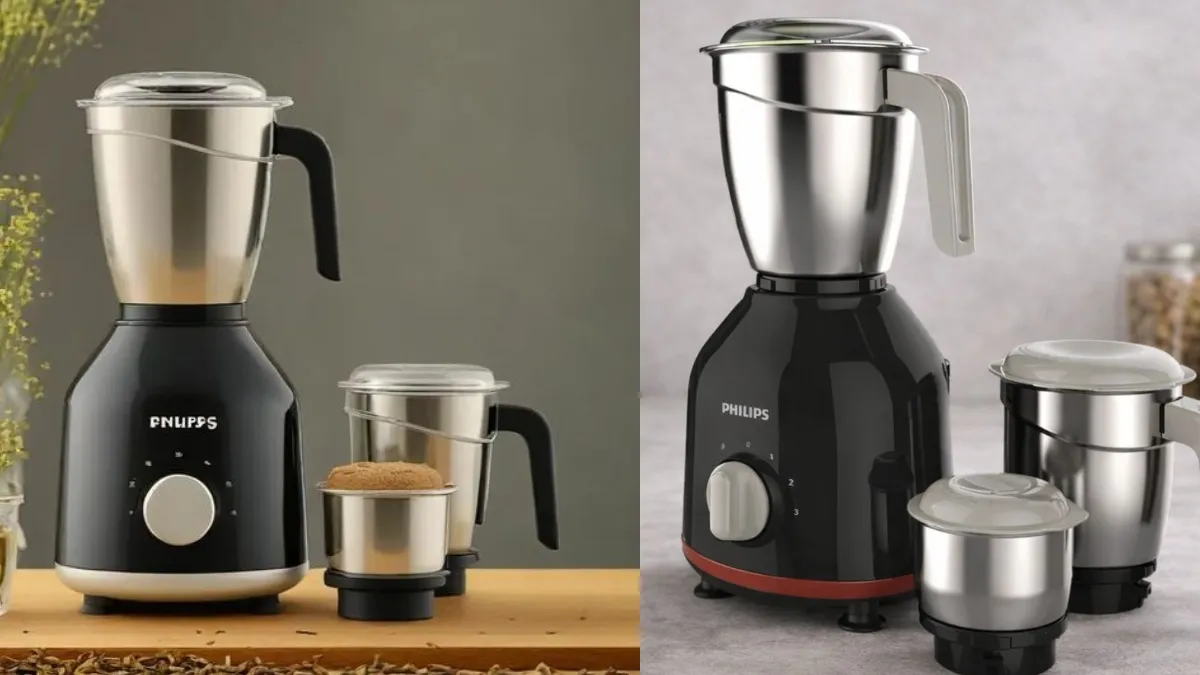 दमदार परफॉर्मेंस और भरोसेमंद क्वालिटी वाला अच्छा सा मिक्सर ग्राइंडर लेने की सोच रहे हैं, तो फिलिप्स ब्रांड के बारे में विचार कर सकते हैं। इस ब्रांड के मिक्सर ग्राइंडर भारतीय रसोई के लिए सही हो सकते हैं। ये मजबूत मोटर, शार्प ब्लेड्स और टिकाऊ जार के साथ सूखे मसाले पीसने से लेकर गीले बैटर, चटनी और स्मूदी तक हर काम में बेहतरीन परफॉर्मेंस देते हैं। इस ब्रांड के पास आपको 750 वॉट से लेकर 1000 वॉट तक वाले मिक्सर ग्राइंडर के विकल्प मिल जाएंगे। एडवांस टेक्नोलॉजी और सेफ्टी फीचर्स की वजह से Philips के मिक्सर ग्राइंडर लंबे समय तक सुरक्षित और स्मूद उपयोग सुनिश्चित करते हैं। यहां पर फिलिप्स Mixer Grinder के 5 बढ़िया विकल्प दिए जा रहे हैं। अलग-अलग वॉट क्षमता वाले इन मिक्सर को आप जरूरत के हिसाब से अपनी रसोई का हिस्सा बना सकते हैं।
