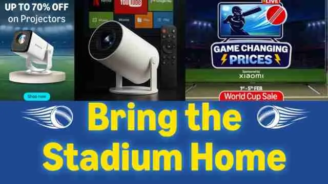 7 फरवरी से ICC मेन्स T20 वर्ल्ड कप की शुरुआत होने जा रही है और क्रिकेट का जुनून हर घर में छाने वाला है। ऐसे में अगर आप मैच देखने का मजा कई गुना बढ़ाना चाहते हैं, तो Amazon World Cup Sale 2026 आपके लिए एक शानदार मौका लेकर आई है। इस सेल में Portable Projectors पर धमाकेदार ऑफर्स मिल रहे हैं, जिससे आप अपने घर को ही मिनी स्टेडियम बना सकते हैं। यह सेल 1 फरवरी से शुरू हो चुकी है और 5 फरवरी तक चलेगी। इसकी मदद से अब हर शॉट और कैच का मजा बड़ी स्क्रीन पर, शानदार साउंड के साथ देखा जा सकता है। दोस्तों और परिवार के साथ दीवार या स्क्रीन पर मैच देखने का अनुभव किसी स्टेडियम से कम नहीं लगेगा। इस सेल के दौरान XGIMI, Lumio, E GATE जैसे ब्रांड के कई प्रोजेक्टर्स पर 70% तक छूट मिल सकती है, साथ ही चुनिंदा बैंक कार्ड्स पर एक्स्ट्रा डिस्काउंट और नो-कॉस्ट EMI जैसे बैंक ऑफर्स भी उपलब्ध हैं। यानी कम बजट में बड़ी स्क्रीन का सपना पूरा करने का यह सबसे सही समय है, तो बिना समय गवाएं नजर डालें 5 बढ़िया विकल्प पर नीचे -