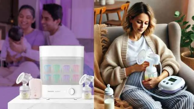 नई मां बनने के बाद, ब्रेस्ट फीडिंग करवाना सबसे जरूरी होता है क्योंकि नन्ही सी जान पूरी तरह से अपनी मां पर ही आधारित रहती है। ऐसे में अगर आप भी नई-नई मां बनी हैं, साथ ही आपको ऑफिस का भी काम संभालना होता है जिस वजह से आप अपने बच्चे से दूर रहती हैं। तो आप ब्रेस्ट फीडिंग पंप की मदद ले सकती हैं। Breast Milk Pump में से कुछ को मैनुअली चलाया जा सकता हैं तो वहीं कुछ को बीजली की मदद से चलाया जा सकता है। इनकी सबसे अच्छी बात यह है कि ये आपको दूध को इकट्ठा करने, बच्चे को दूध पिलाने में मदद कर सकते हैं। ये सभी अलग-अलग आकार के हैं और साथ ही इन्हें अलग-अलग मटेरियल से भी बनाया गया है, जिसे आप अपनी आवश्यकता के अनुसार चुन कर उपयोग में ले सकती हैं।