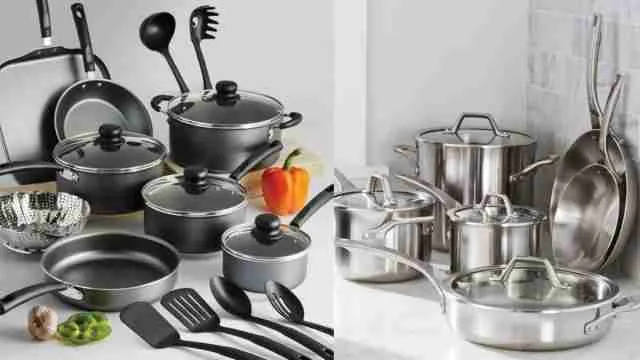 - कौन-सा कुकवेयर सेट रोजमर्रा के उपयोग के लिए अच्छा है?+स्टेनलेस स्टील और हार्ड-एनोडाइज्ड सेट रोजमर्रा के लिए सबसे टिकाऊ और सुरक्षित विकल्प हैं।