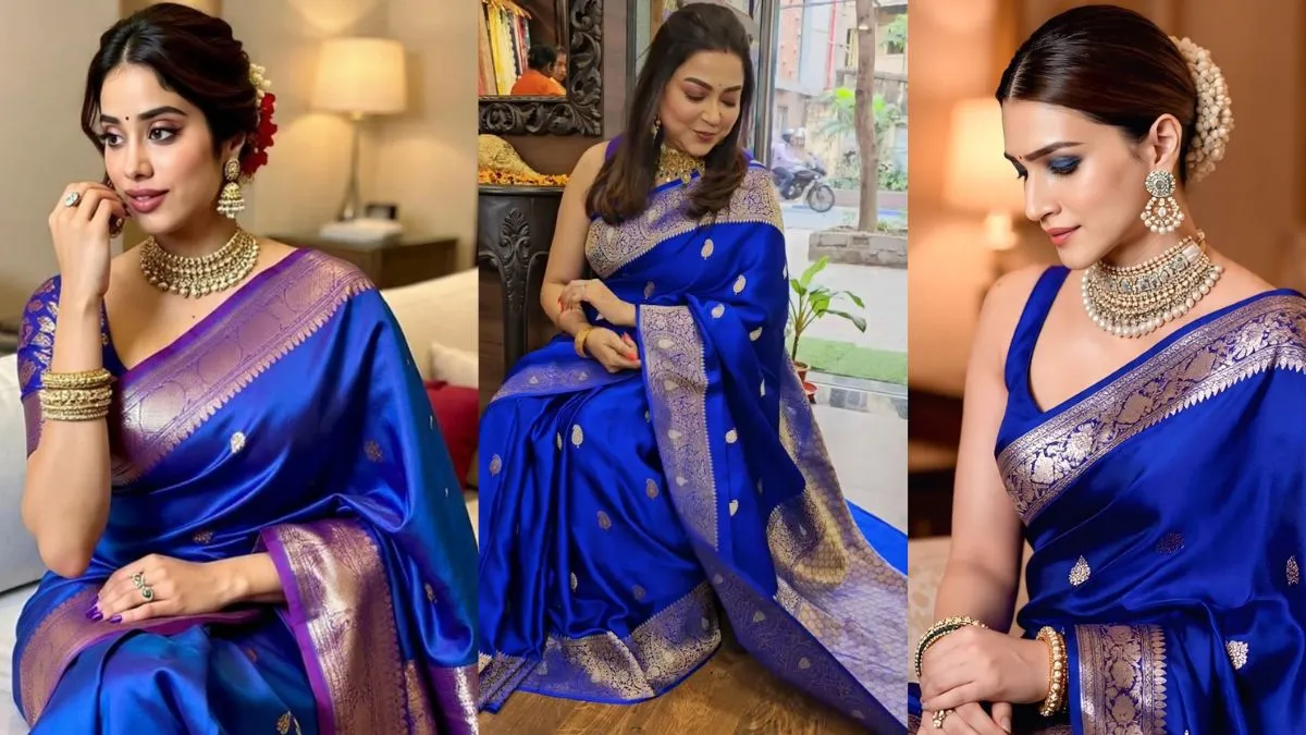 Chaitra Navratri 2026 के सप्तमी के दिन आप भी कुछ खास पहनना चाहती हैं और परंपरा को भी अपनाना चाहती हैं तो रॉयल ब्लू साड़ी पहन सकती हैं जो ट्रेडिशन और ट्रेंड का बेहतरीन मेल दिखा सकती हैं और हर किसी का ध्यान अपनी ओर आकर्षित कर सकती हैं।