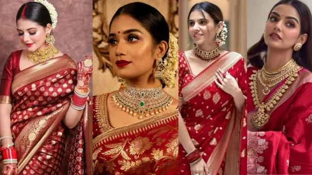 करवा चौथ का त्योहार नजदीक आ रहा है, और हर महिला इस खास दिन के लिए सबसे खूबसूरत दिखना चाहती है। वहीं, लाल साड़ी करवा चौथ का एक महत्वपूर्ण हिस्सा है, और इसके साथ सही ज्वेलरी सेट पहनना आपके लुक को और भी निखार सकता है। हम आपको लाल साड़ी के साथ पहनने के लिए शानदार हैवी ज्वेलरी सेट के बारे में बताएंगे, ताकि आप Karwa Chauth 2025 में सबसे अलग दिखें। पारंपरिक गोल्ड प्लेटेड से लेकर इनमें क्लासी कुंदन, स्टाइलिश AD सेट और यहां तक कि आकर्षक स्टोन वर्क वाले सेट भी शामिल हैं। ऐसे में आप त्योहार के मौके पर अपनी पसंद का सेट लाल साड़ी के साथ पहनकर पिया जी का दिल लुभा सकती हैं। नीचे इनके 5 शानदार विकल्प शामिल किए हैं, जिन्हें आप एक बार देख सकती हैं-