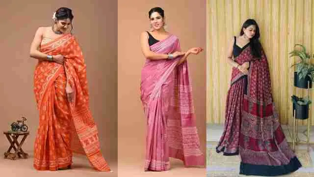 हैंड ब्लॉक प्रिंट वाली यह कॉटन मलमल साड़ी काफी पारंपरिक प्रिंट के साथ तैयार की गई है। लाइटवेट वाली यह साड़ी Mahashivratri 2026 पर आपको एक एथिनिक व आरामदायक लुक दे सकती है। इसे आप पूजा, कीर्तन या किसी भी अनुष्ठान के दौरान आसानी से पहन सकती हैं। प्लेन बुनाई वाली यह साड़ी देखने में भले ही सिंपल है लेकिन आपको एक क्लासी लुक दे सकती है। इसमें आपको ब्लू, मरून, मल्टीकलर, और स्काय ब्लू जैसे रंगों के विकल्प मिल जाएंगे। इस साड़ी को ऑक्सिडाइज्ड ज्वेलरी और कॉन्ट्रास्ट ब्लाउज के साथ पेयर किया जा सकता है।