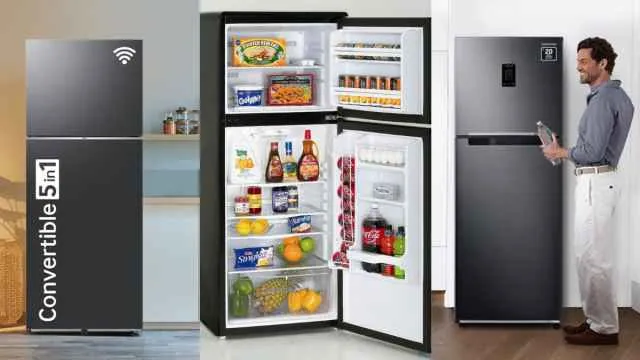 Rated 3 stars on energy efficiency, this Samsung 236-liter fridge can be the best choice when it comes to finding the balance of budget and advanced features. Packed with the Easy Slide shelf, this one of the best Samsung convertible fridges lets you find what you want and reach things even in the back. Having the moveable ice maker, this appliance delivers a large quantity of ice with the simple twist. Its door alarm keeps you on alert, then the fridge accidentally remains open, and the deodorizer filter aids in eliminating strong smells every time through the carbon filters. Be it a frost-free function or consuming less noise, this fridge can do it all.