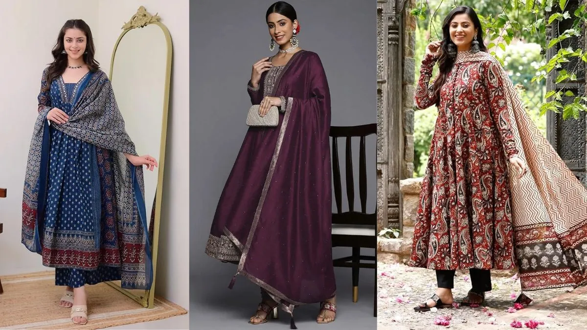 Anarkali kurta sets are one of the most popular ethnic wear options for women to stay comfortable even in traditional wear. What sets anarkali kurtas apart is their fit and flare pattern, which stays fit at the top, and has a pleated design from waist down which ensures a loose fit and has a flowy look as you move. Based on style, design, colour, and material, you can choose the best anarkali kurta set that fits your preferences and styling needs well. For special occasions, opt for silk anarkali kurta set for ladies, or opt for cotton and rayon material suits to wear casually. Here, let us see some of the top options for anarkali kurta sets for women that you can add to your wardrobe, all within a budget price range.